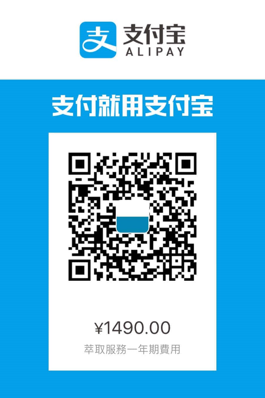 请扫描以下支付宝二维码直接支付 AUTOF萃取服务 一年期费用。