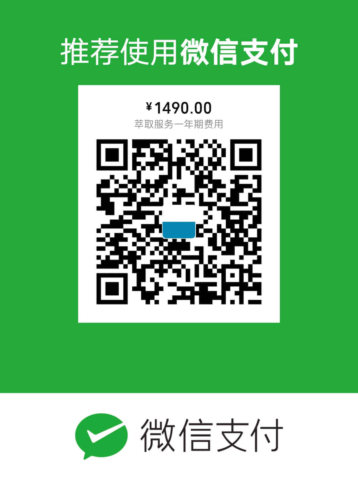 请扫描以下微信支付二维码直接支付 AUTOF萃取服务 一年期费用。